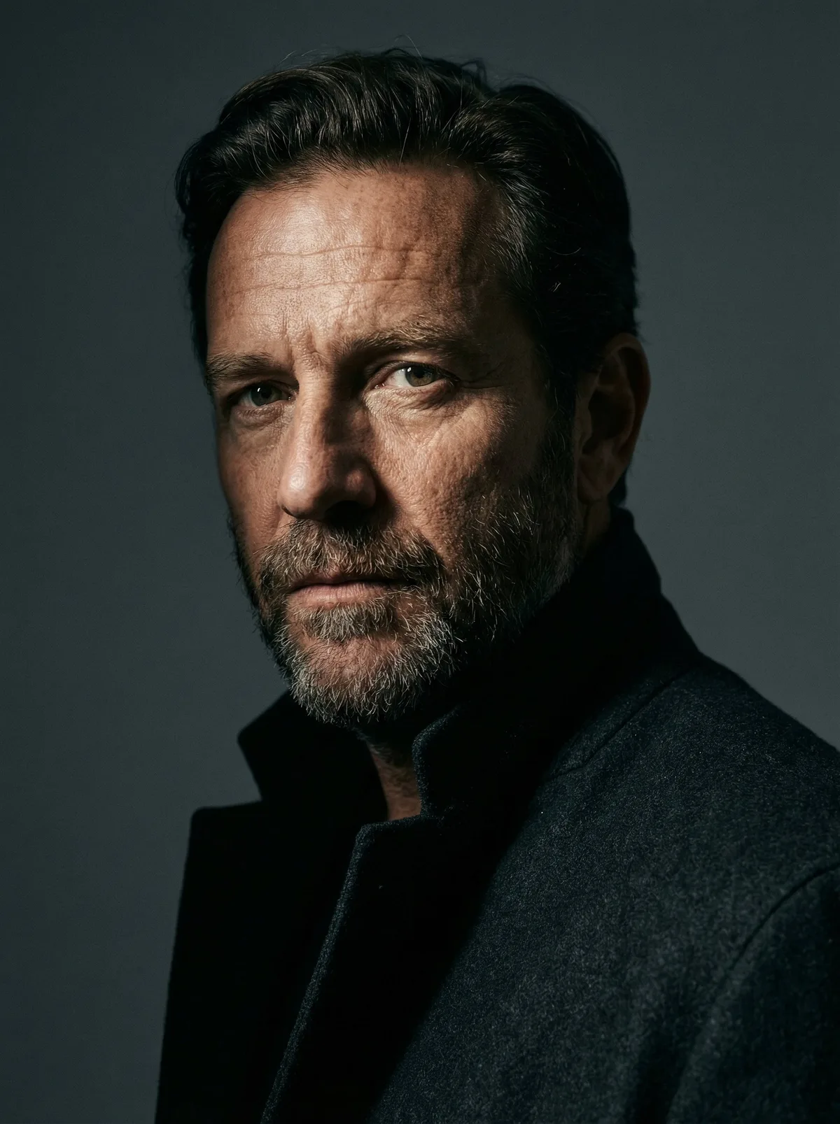мужской портрет в студии, контрастный свет, драматическое освещение, чистый фон, cinematic style, high detail