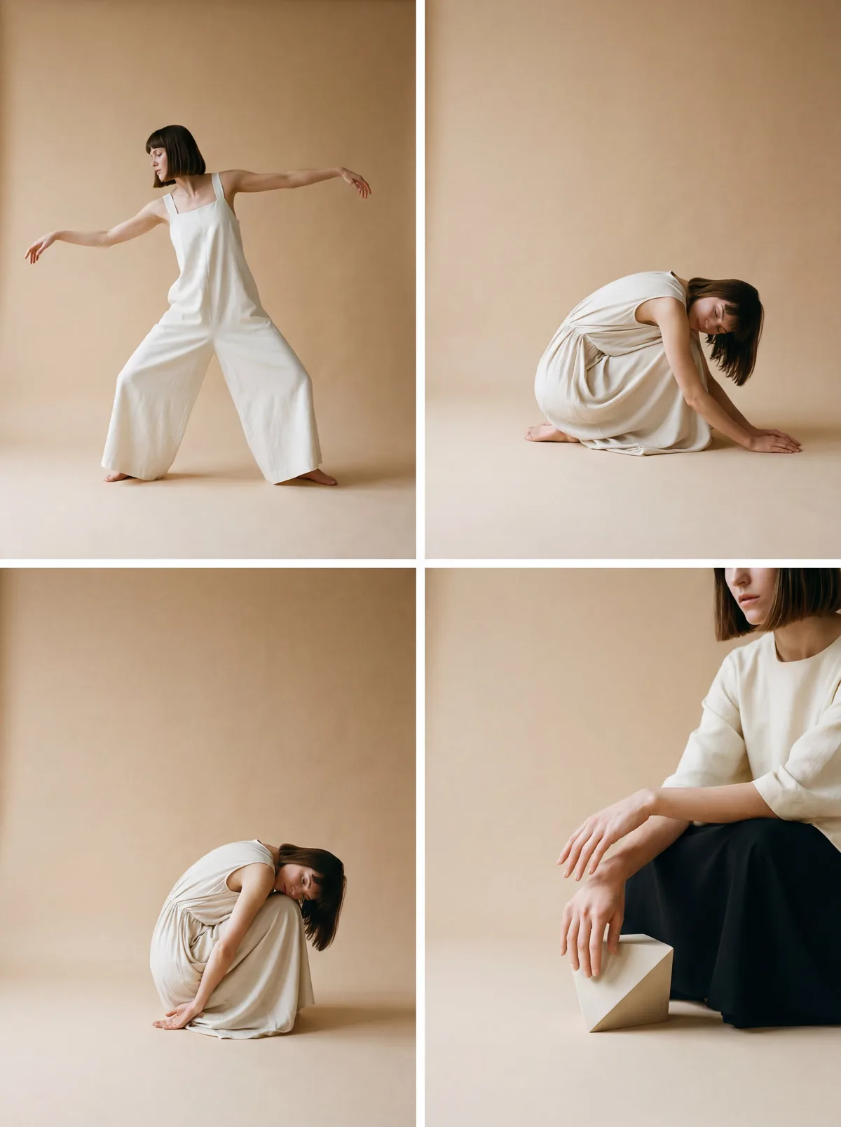 фотосессия в минималистичном стиле, однотонный фон, чистая композиция, мягкие тени, акцент на форме и позе, studio lighting