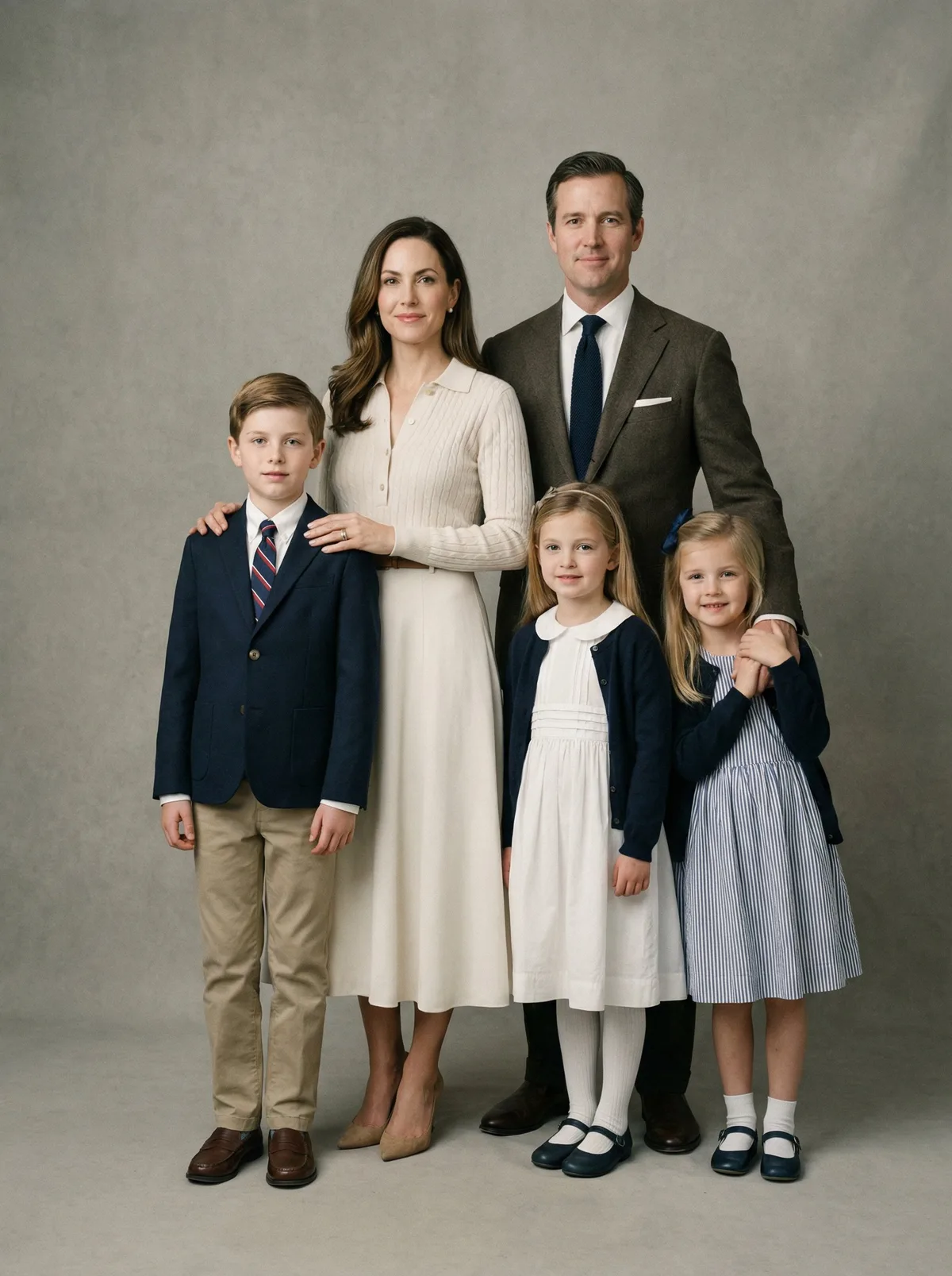 семейный портрет в студии, нейтральный фон, мягкий рассеянный свет, чистая композиция, classic portrait, high detail